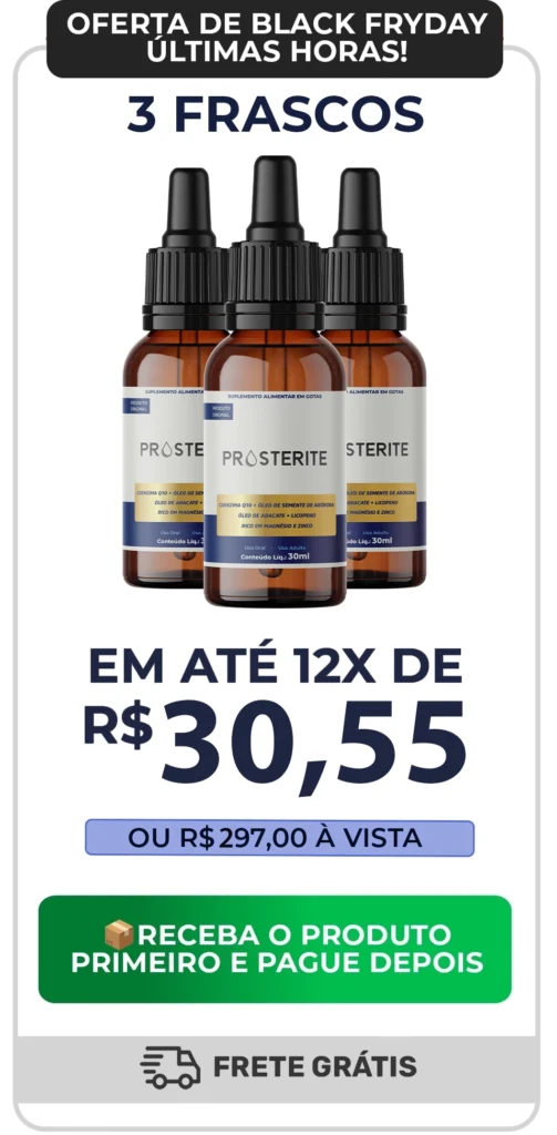 O Prosterite combina ativos poderosos que desinflamam a próstata, aliviam o desconforto urinário e ainda recuperam sua energia sexual.